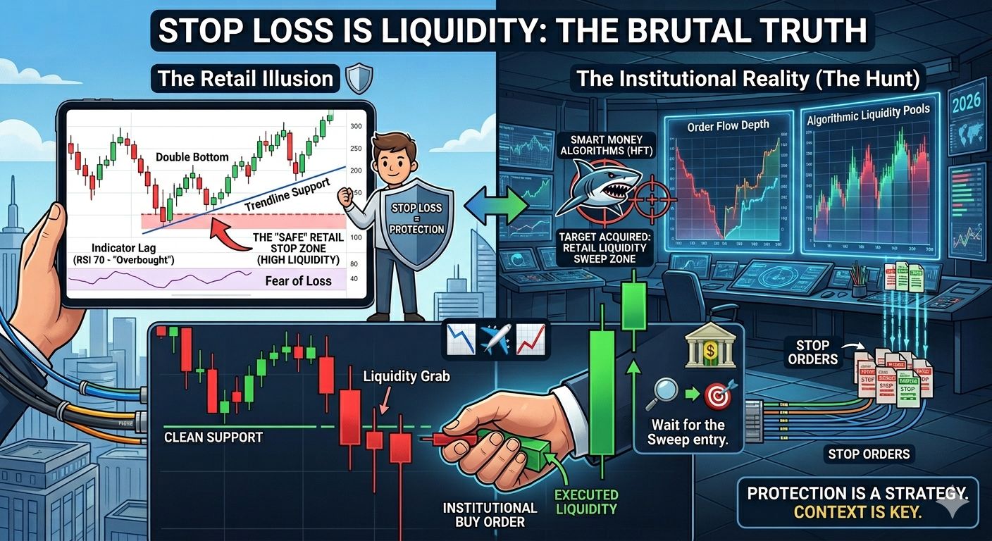 Let’s get real for a second. 🧠 You’ve been told that a Stop Loss (SL) is your "insurance policy." You’ve been taught to tuck it neatly under a support level to "stay safe."