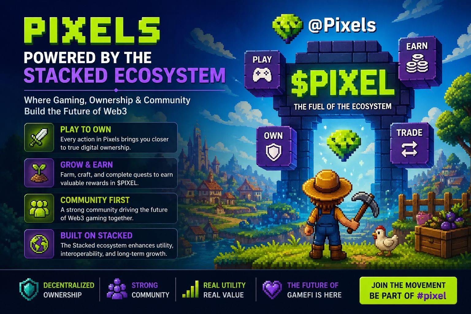 The rise of @Pixels is a strong example of how Web3 gaming is evolving beyond simple play-to-earn models into a complete digital economy. The Pixels ecosystem, powered by the growing Stacked ecosystem, is creating a space where players can truly own their progress, assets, and rewards. This is what makes $PIXEL stand out as more than just a token — it acts as the fuel that keeps the ecosystem active and valuable.