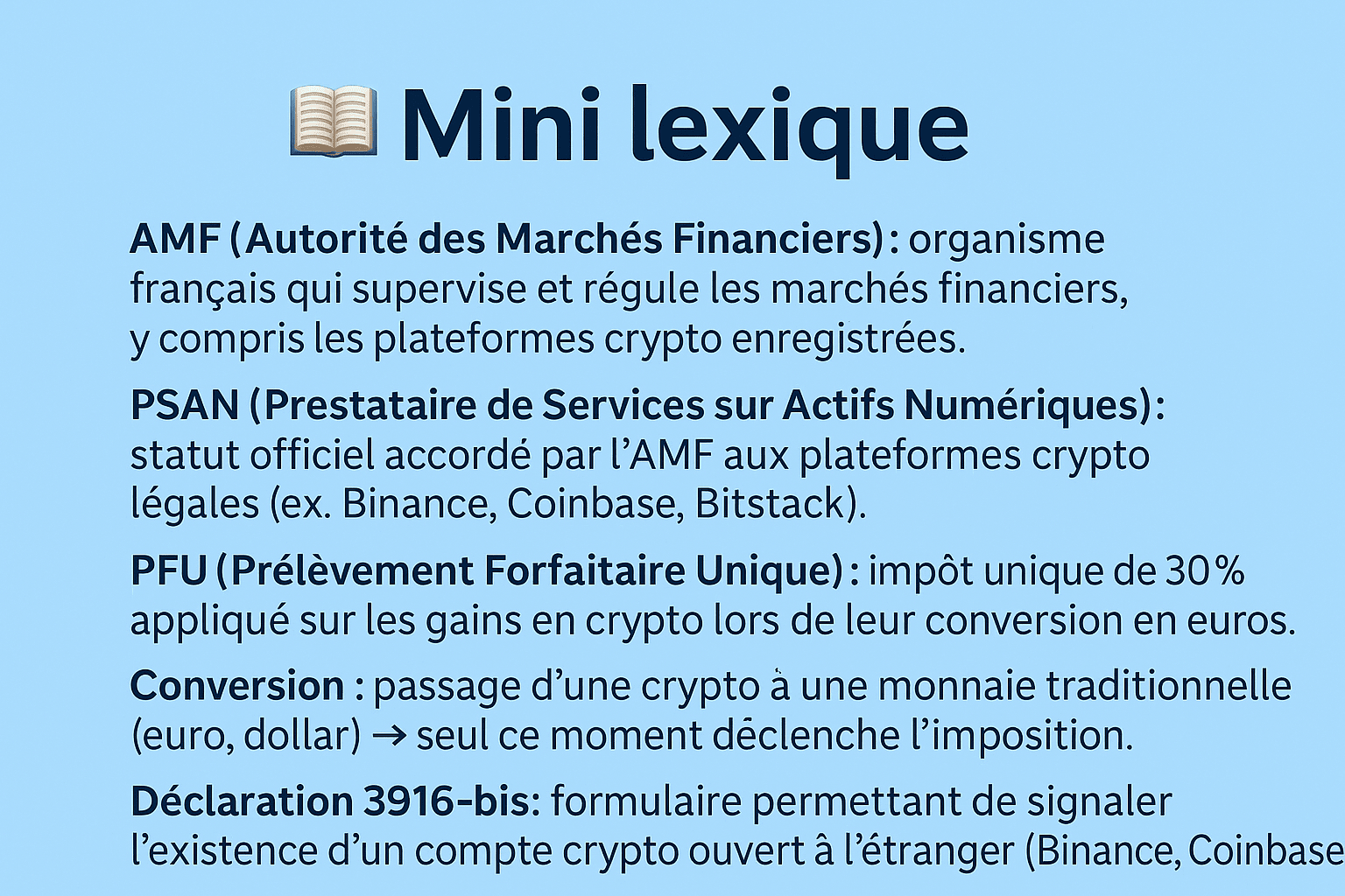 ⚠️ The platforms used must be registered with the AMF (Autorité des Marchés Financiers) as Digital Asset Service Providers (PSAN).