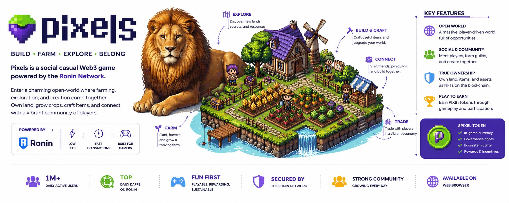 Pixels is one of those rare digital worlds that doesn’t try to impress you immediately. At first glance, it feels soft, almost understated—a place where you plant crops, wander through simple landscapes, and interact with others at your own pace. There’s no overwhelming sense of urgency, no aggressive push toward competition or profit. And yet, the longer you stay, the more it becomes clear that this quiet surface is hiding something far more ambitious.