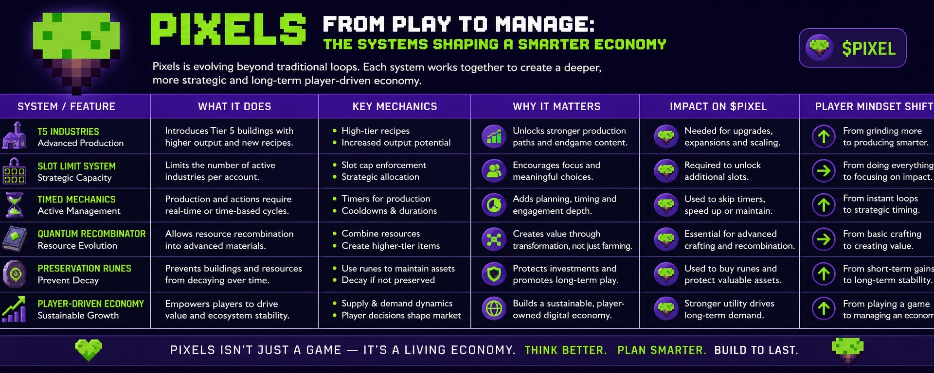 Pixels is moving away from “play-to-earn” and toward something that feels more like “play-and-manage.”