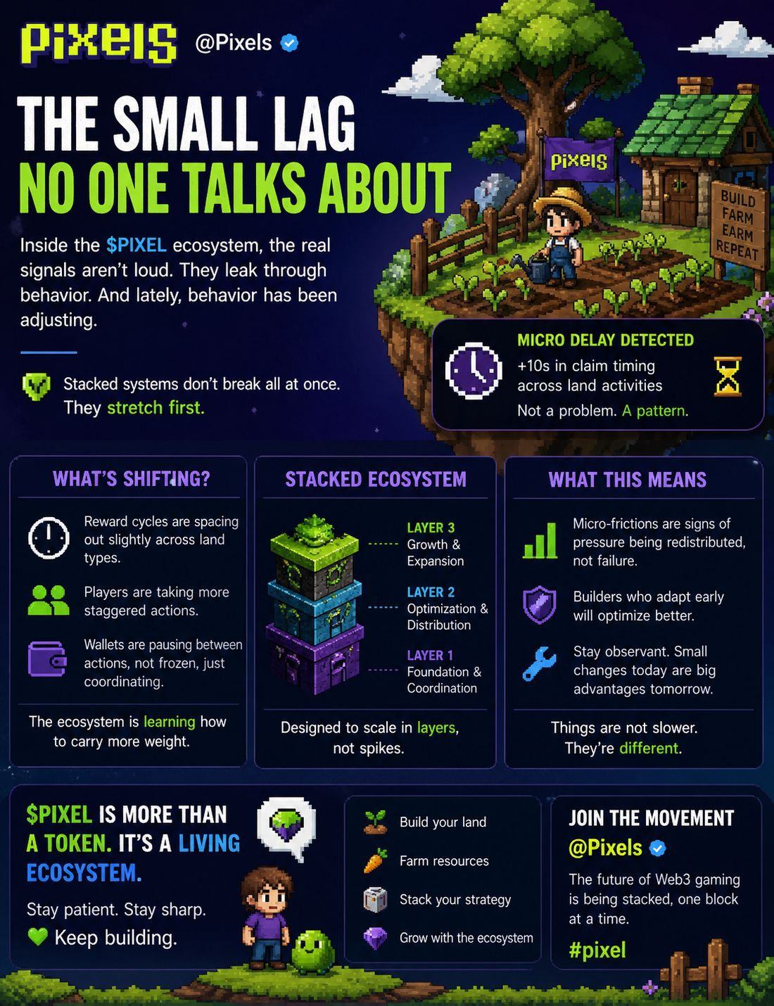 The Stacked design inside @Pixels was always meant to scale in layers, not spikes. So these micro-frictionsthese tiny delays, slight inconsistenciesmight actually be signs of pressure being redistributed rather than failure appearing.