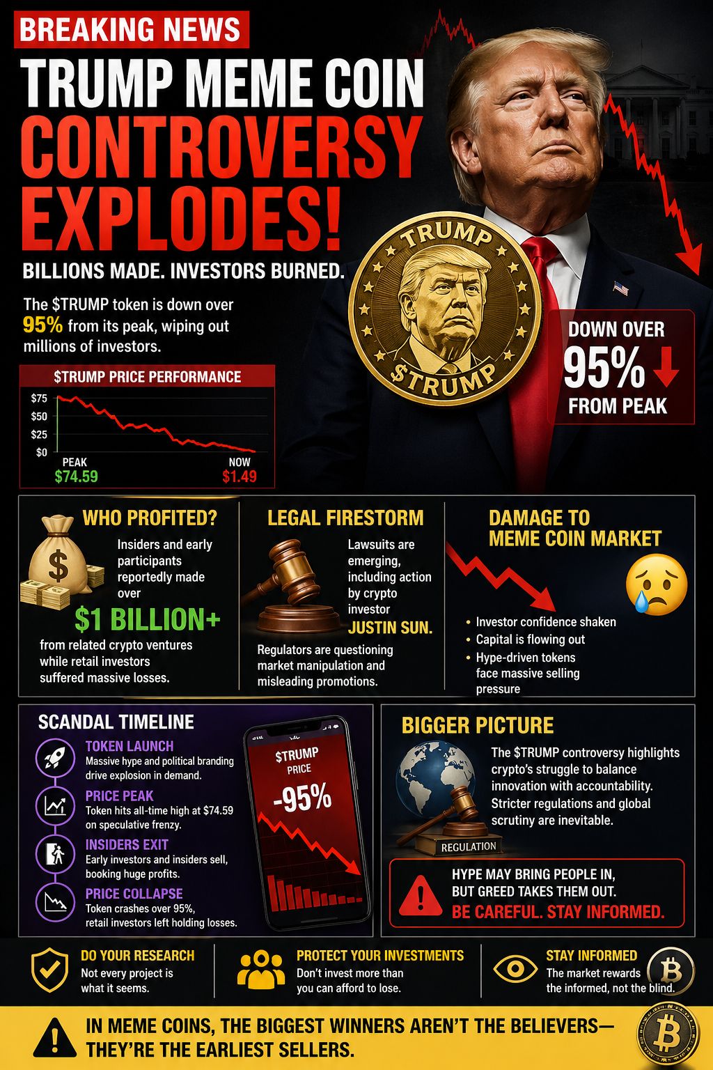 The crypto market thrives on hypeābut the latest storm surrounding the $TRUMP meme coin has pushed that hype into dangerous territory. What started as a politically charged digital asset has now become one of the most controversial stories in crypto this year.