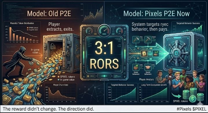 The old P2E model failed because players were optimizing for extraction. Log in, grind, exit. The game was just the vehicle. What seems to be different here and this is the part I keep circling back to is that rewards are now being deployed based on what behavior the protocol actually wants, not what players want to extract.