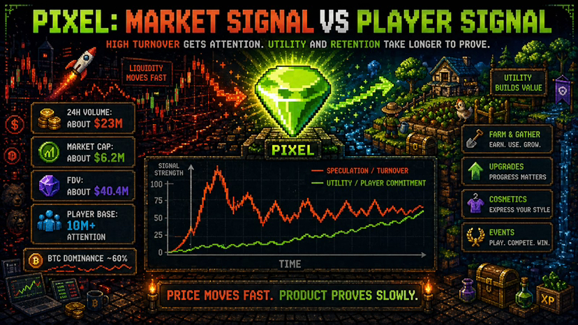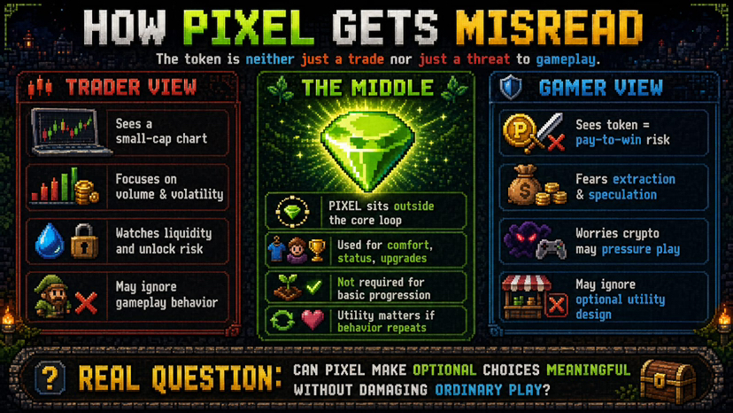 traders look at pixels and see a small-cap chart with volatility attached. gamers look at the same token and immediately feel the old fear… another game slowly becoming a market, another loop quietly turning into work.