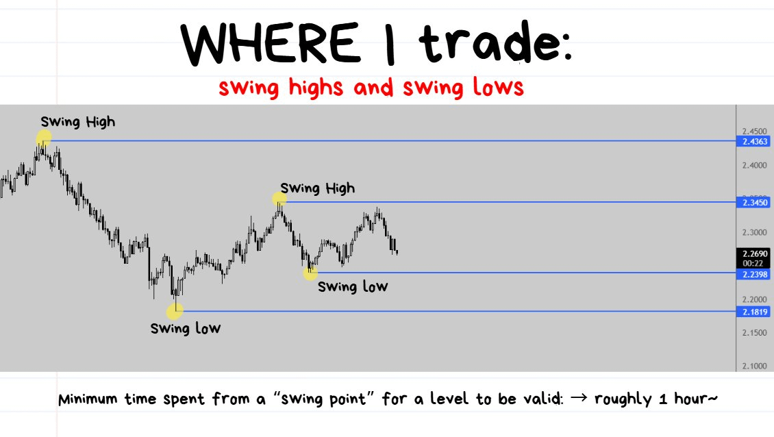 4) Tôi luôn giao dịch ở các đỉnh và đáy dao động. Tôi thiết lập nhiều cảnh báo trên đường đến mức hỗ trợ/kháng cự để đảm bảo nhận được thông báo khi giá đang tiếp cận mức đó. Tôi muốn có đủ thời gian trước khi đưa ra quyết định.