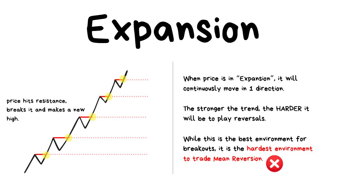 Giai đoạn mở rộng = Xu hướng, giá liên tục di chuyển theo một hướng.