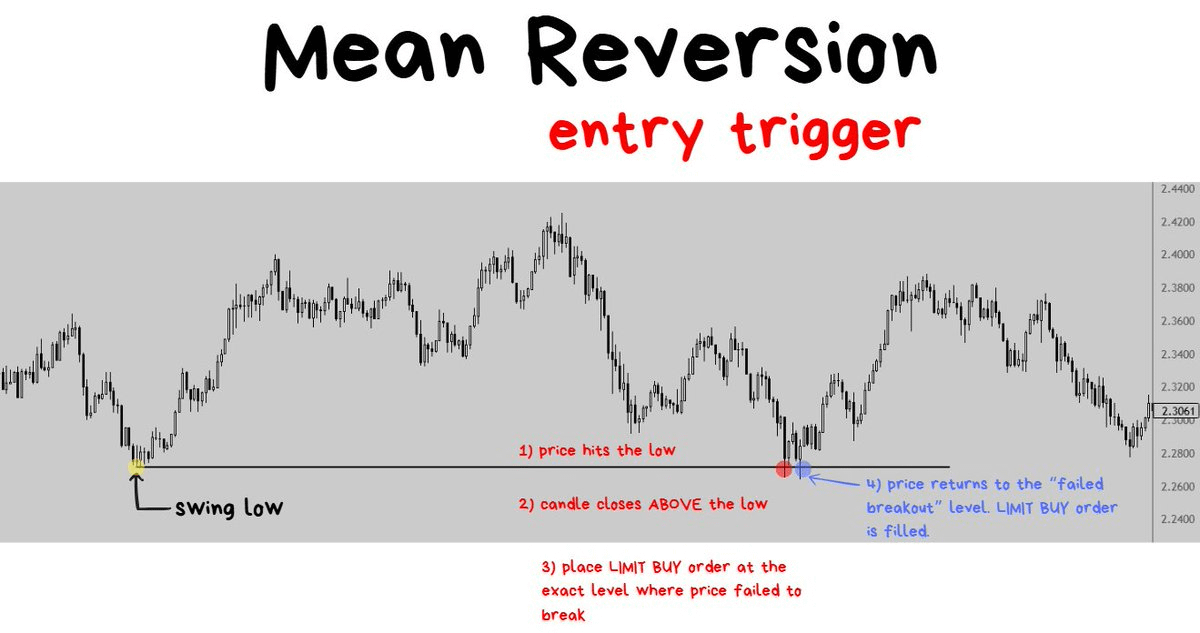 1) Giao dịch đảo chiều trung bình là đặt cược vào việc giá "bật lên" từ một mức hỗ trợ/kháng cự chứ không phải "phá vỡ" một mức hỗ trợ/kháng cự.
