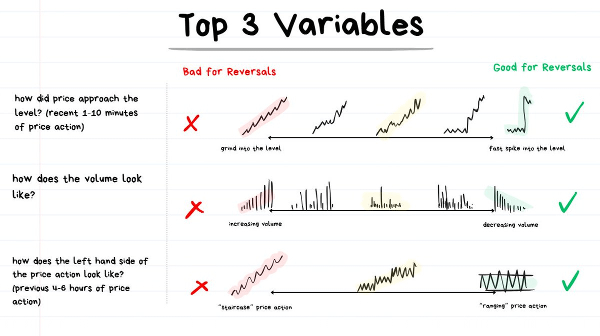 6) Có 3 biến số quan trọng mà tôi xem xét cho tất cả các giao dịch đảo chiều. Cách tiếp cận ngưỡng (1-10 phút gần đây). Khối lượng. Hình dạng của phía bên trái của hành động giá (4-8 giờ trước đó).