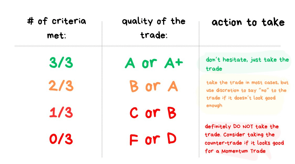 ⚠️2/3 Biến số đồng thuận⚠️: Hầu hết thời gian thị trường sẽ không cung cấp cho tôi những thiết lập hoàn hảo. Hầu hết thời gian chúng sẽ không hoàn hảo với 1 biến số chống lại tôi. Điều này không sao và không phải là vấn đề miễn là giao dịch "hầu hết" nghiêng về phía tôi (Đây là khi 2/3 biến số đồng thuận). Đây là lúc tôi cần sử dụng sự phán đoán của mình để nói "không" và từ chối giao dịch một số giao dịch có chất lượng thấp hơn.