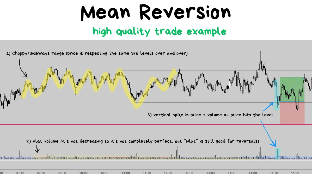 2) Giao dịch đảo chiều trung bình dễ thực hiện hơn trong môi trường "đi ngang" hơn là môi trường "có xu hướng".