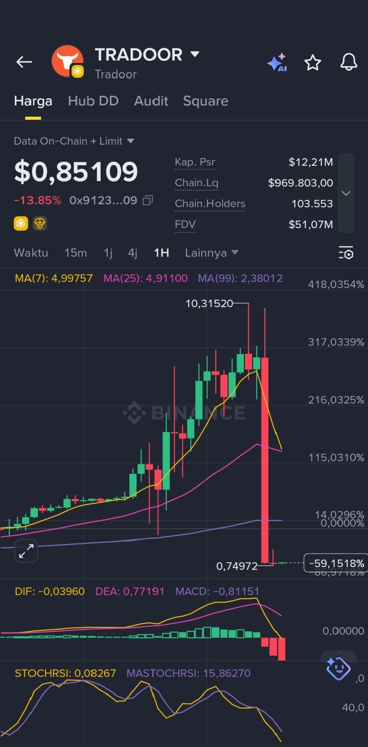 TRADOOR, GRASS, JELLYMYJELLY, and RAVE had wild swings: a rapid pump followed by an extreme correction.