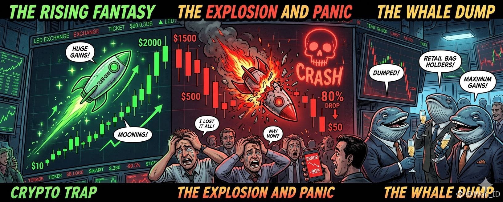 Pump and Dump refers to a token's price being deliberately inflated rapidly by a specific group (whales, insiders, or a coordinated community). Then, after retail FOMO kicks in, they sell heavily, causing the price to plummet. Small tokens with low liquidity are particularly vulnerable to manipulation.