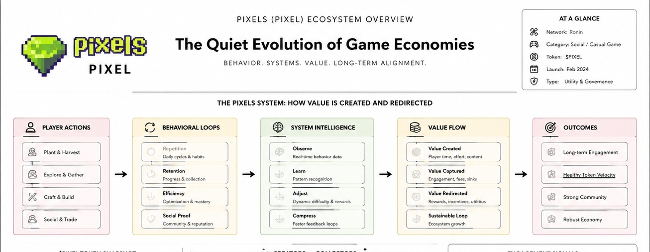 I might be wrong, but I started to sense that Pixels wasn’t just another “play and earn” system. Sure, it had the mechanics—a token, actions to perform, rewards—but something deeper was unfolding. At its core, it felt more like a system designed to reshape player behavior rather than simply provide rewards. And in that quiet shift, I began to see the evolution of the game not as a product, but as a living, breathing entity that adapts and learns over time.