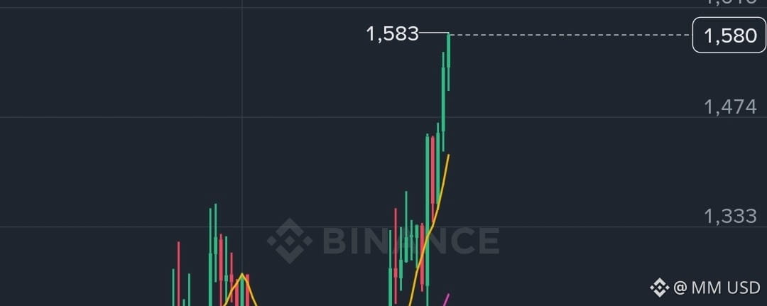 But the last candlestick is standing up at the 1.58 level → sign of a potential top / high risk of a correction