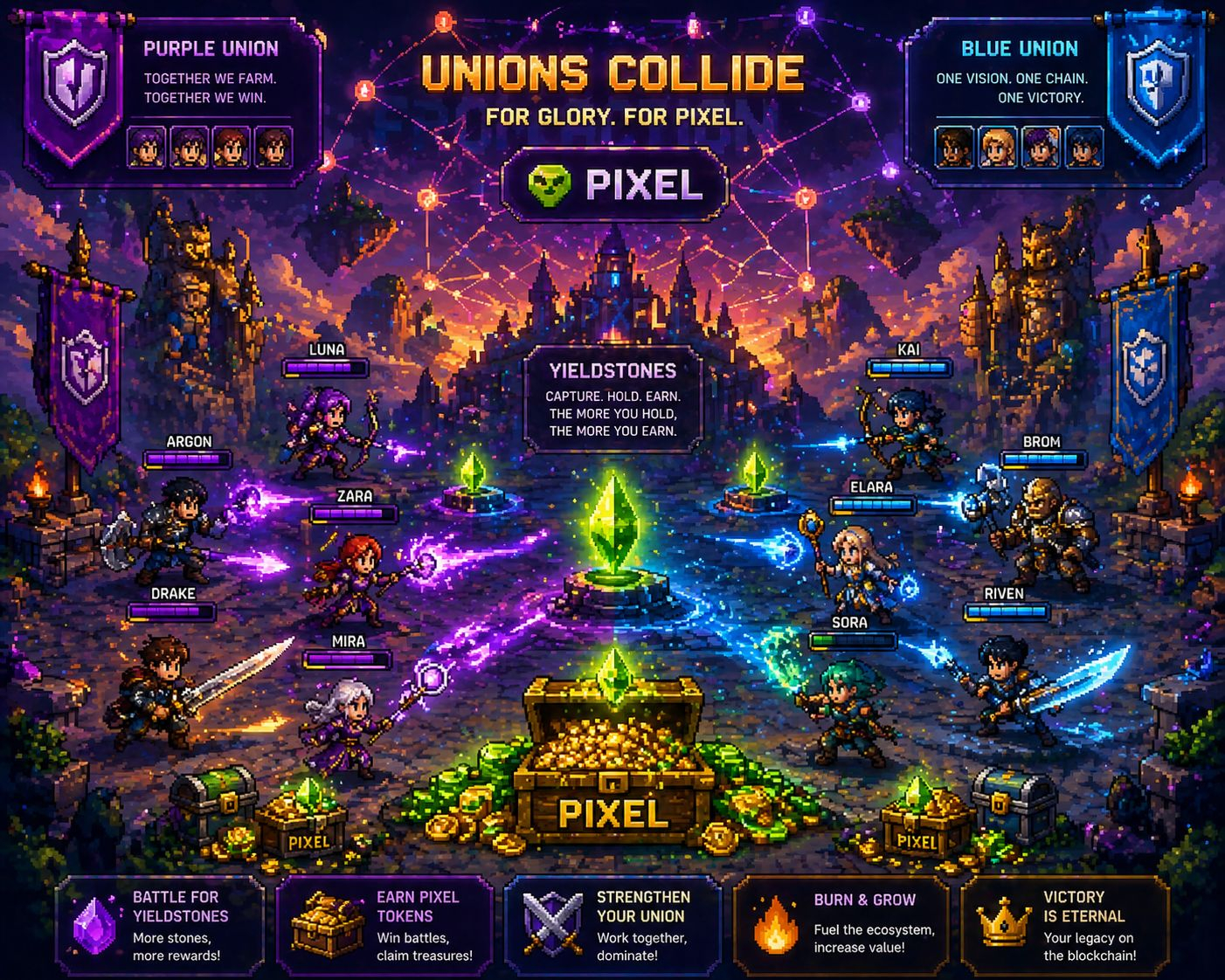 Early Pixels was mostly casual farming. Nice, relaxing, but limited. Fast forward to Chapter 3: Bountyfall, and the game looks completely different. We now have full PvP battles, PvE content, team-based Unions, Yieldstones, and even player sabotage mechanics. It went from a farming sim to a genuinely competitive experience where strategy and teamwork matter.