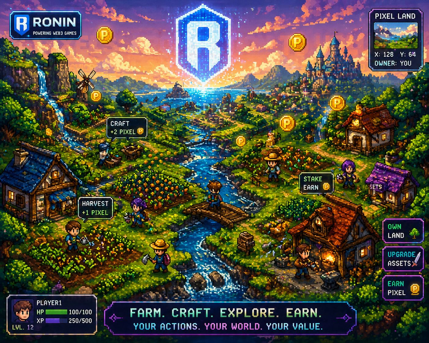 If you haven't played it yet, Pixels is an open-world browser game built on the Ronin Network. Think classic 16-bit RPG energy — farming, exploring, crafting, building — but with real blockchain ownership underneath. No expensive gaming PC needed. No massive upfront investment. You grab a Ronin wallet, log in from your browser, and you're in.