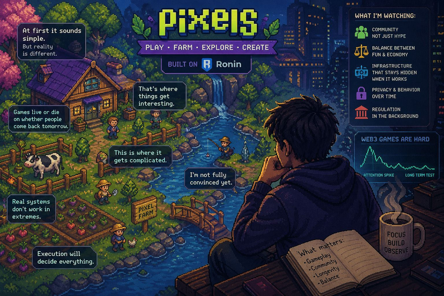 Pixels has always felt like part of a broader correction happening in the industry. For a while, a lot of crypto projects behaved as if the chain itself was enough to create interest. That phase left a lot of wreckage behind. Users got tired, capital got cautious, and the language got softer because the reality got harsher. In that context, a game like Pixels is more interesting than a lot of louder projects because it is not pretending that blockchain alone is the product. It seems to understand that the product has to work as a game first, and only then as a Web3 system. Real systems don’t work in extremes. They do not become useful just because they are decentralized, and they do not become durable just because they are fun for a week.