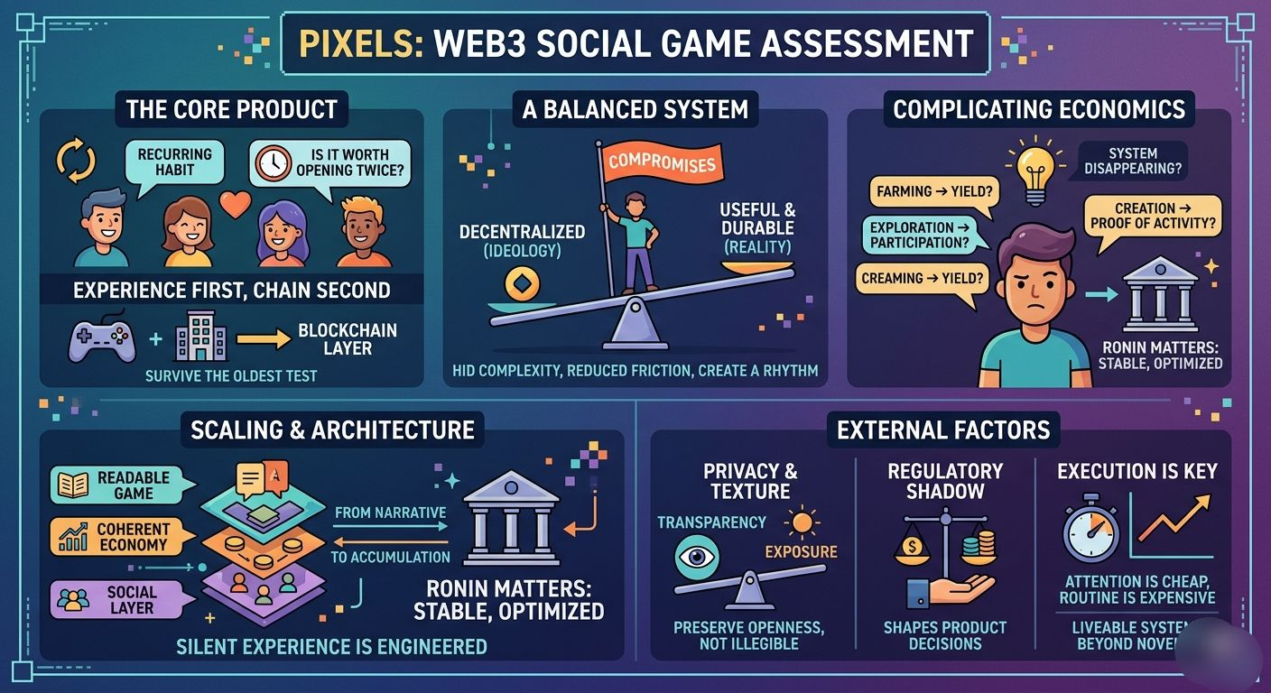 I keep coming back to this idea that the strongest Web3 projects are often the ones that look the least ideological from the outside. That sounds counterintuitive in a space built on strong opinions. But the projects that last tend to make compromises that purists dislike. They hide complexity, reduce friction, and try to fit into habits that users already have. Pixels feels like it belongs in that category. It is not trying to win by being the most radical thing in the room. It is trying to create a loop, a place, a rhythm. That’s where the real question starts for me: whether that rhythm can survive contact with token incentives, speculative attention, and the usual cycle of player behavior that turns every promising social game into a farm for returns.