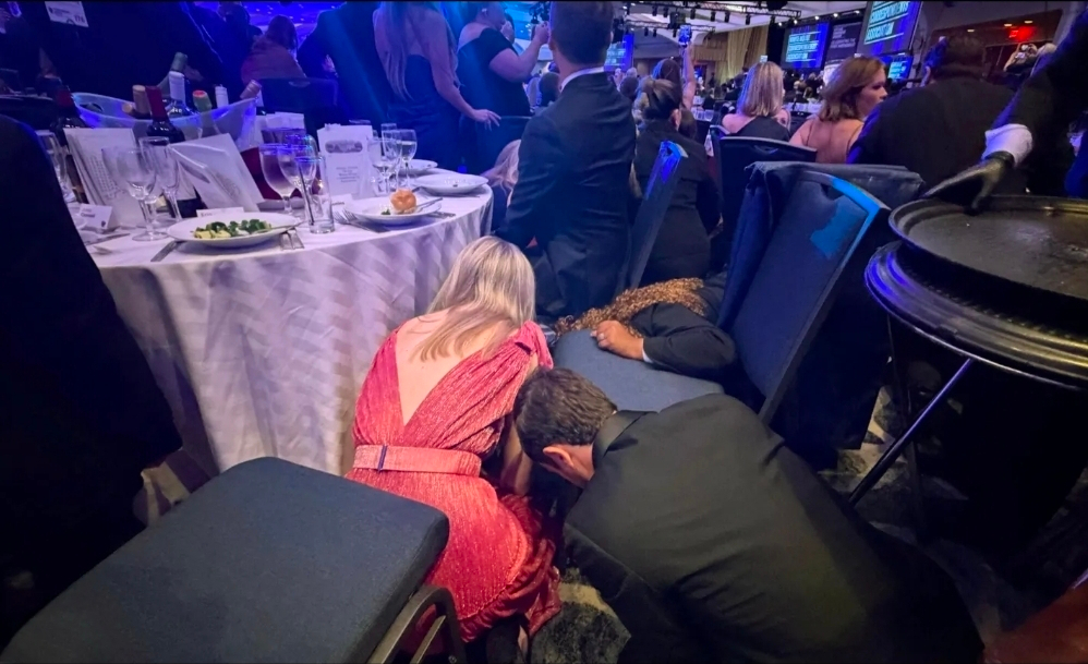 Other attendees remained in the ballroom under lockdown - with many journalists in the room trying the report the news to their respective organisations.