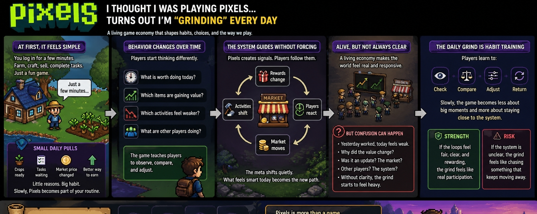 The daily grind in Pixels is not just about repeating tasks. It is about how the project trains attention over time.