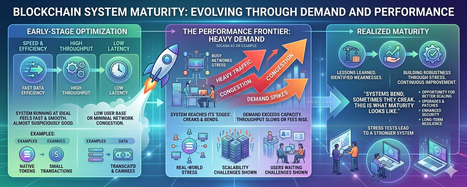 Solana is a good example. When it's working well, it feels fantastic. Almost suspiciously smooth. You click, things happen, and you start wondering why the rest of crypto feels stuck in 2017. But heavy demand has shown where the edges are. Not catastrophic, not fatal, just real. That's what maturity looks like, honestly. Systems bend. Sometimes they creak.