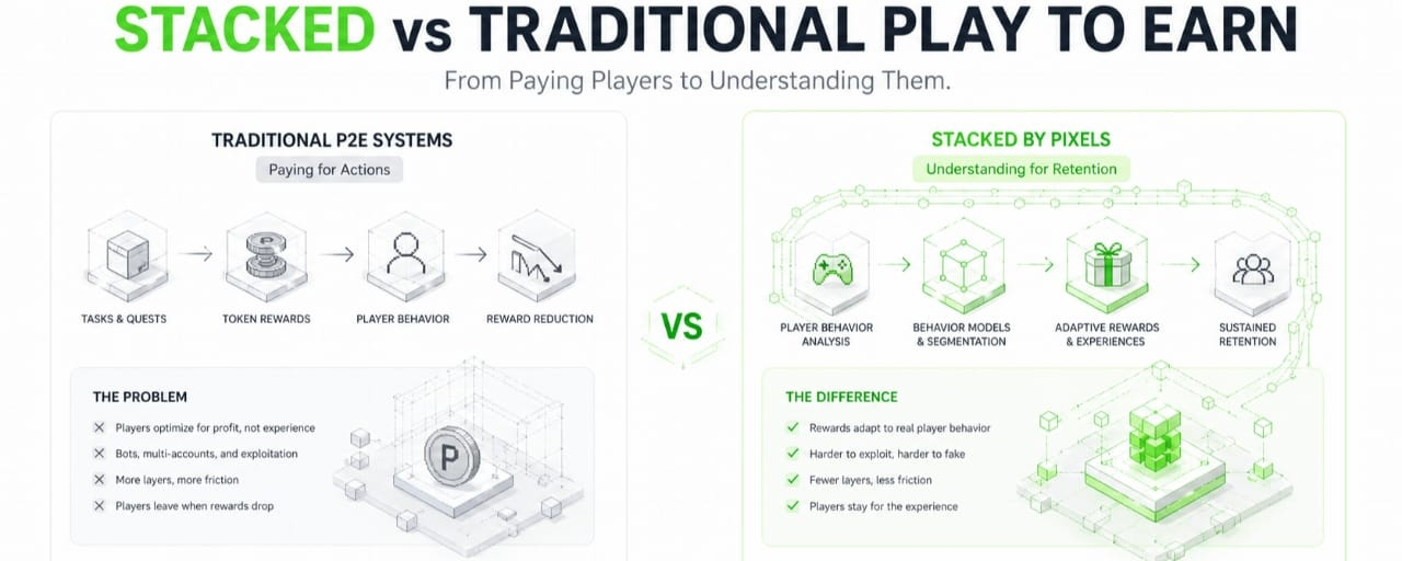 From my perspective, Pixels’ Stacked system is attempting a different approach. Rather than simply increasing rewards or adding more tokens, it seems focused on interpreting player behavior more deeply and adjusting rewards dynamically based on that behavior. Instead of directly paying actions, it observes how players behave under less direct pressure.
