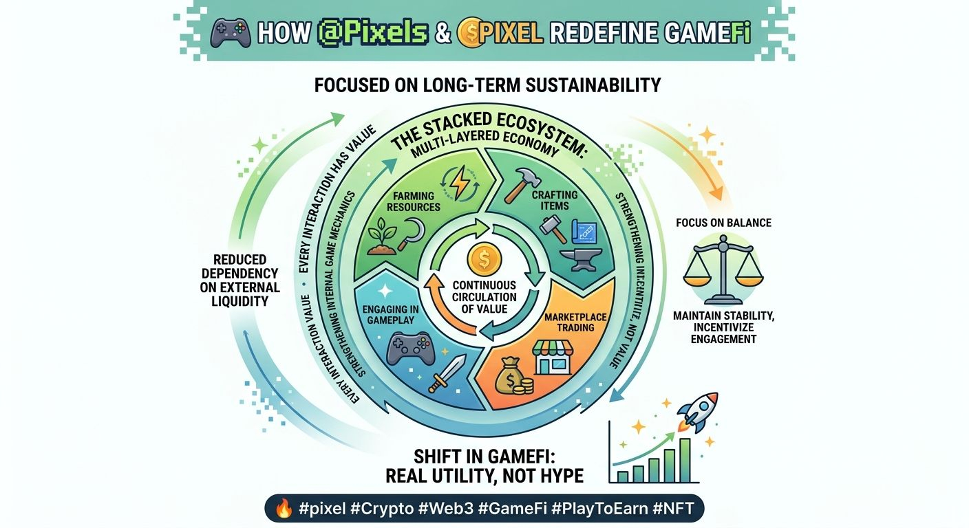 What makes @Pixels unique is its focus on balance. Instead of over-inflating rewards, the system is designed to maintain stability while still incentivizing engagement. The Stacked ecosystem plays a crucial role in ensuring that $PIXEL ins functional across different layers of gameplay.
