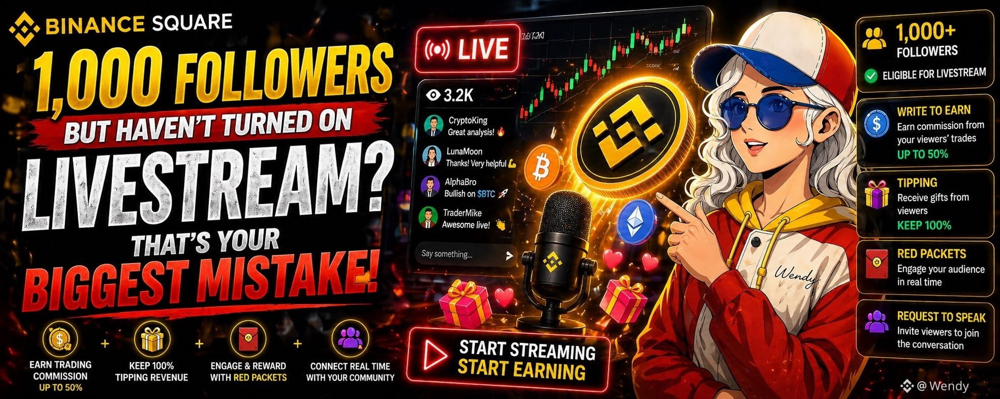 If you haven’t yet hit 1,000 followers but already have streaming experience or a professional content creation background, Binance supports early access applications through an official survey. Approved accounts will be notified via DM.