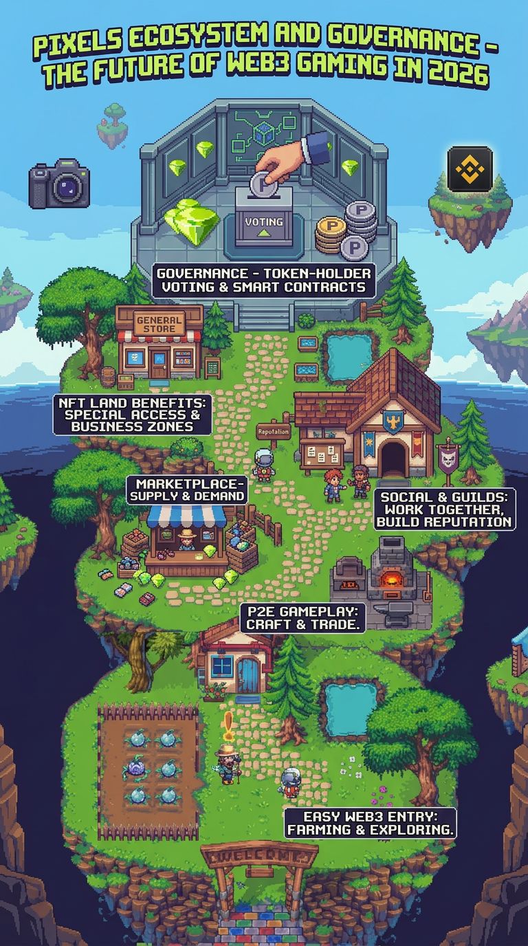 One of the strongest parts of Pixels is its governance system. It runs on blockchain with smart contracts. This means rules are automatic and cannot be easily changed by a single authority.
