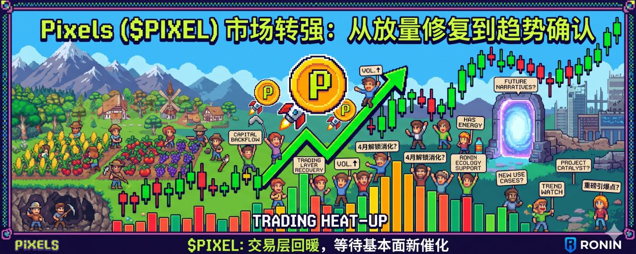 I’ve always felt that to judge whether a rise is meaningful, we can’t just look at how much it has risen; we also need to see if it looks like 'real participants are involved'. And today’s $PIXEL looks much more appealing in this regard than a few days ago. The previous weak, grindy, and pullback feelings have at least temporarily eased. The price is able to rise, and volume is following suit, which indicates the market isn’t completely ignoring it. More importantly, this rise isn’t purely a momentary emotional pump, because if it were just a brief pulse, the market details would often be flimsy, and support would easily lag behind. But the current state feels more like what? It feels like after a period of suppression, the market is finally willing to give it some liquidity and attention back—typical volume recovery and trading warm-up.