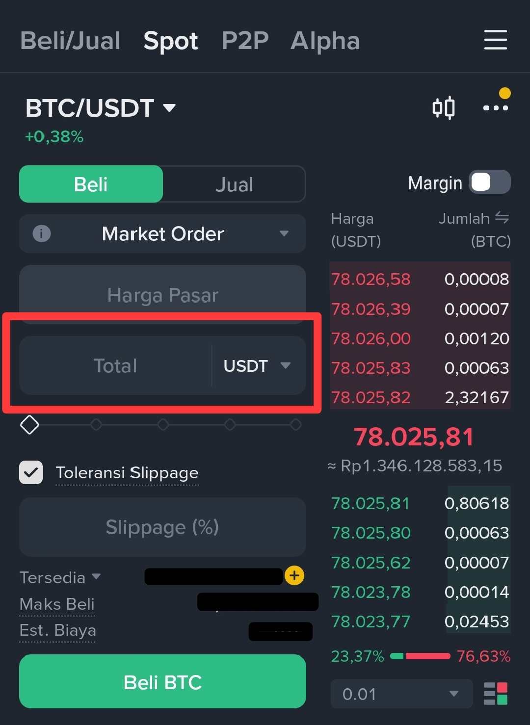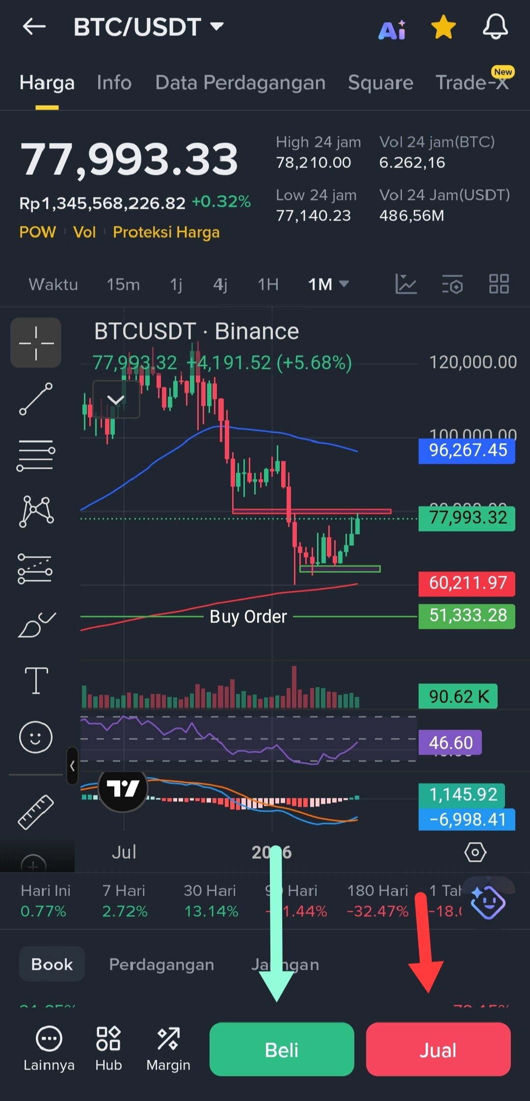 Ketiga, Tersedia 2 opsi, yaitu Beli dan Jual... Karena kita ingin membeli Bitcoin maka pilih opsi beli.