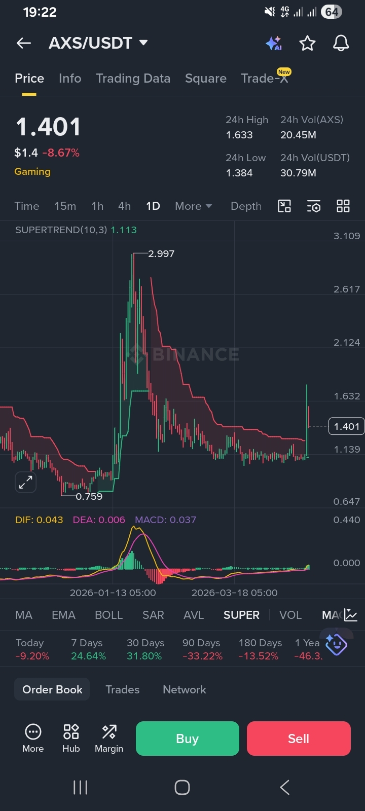 The Support Floor: The previous resistance at $1.20 is now our primary support. As long as AXS holds above this level, the "dip-buying" sentiment remains intact.