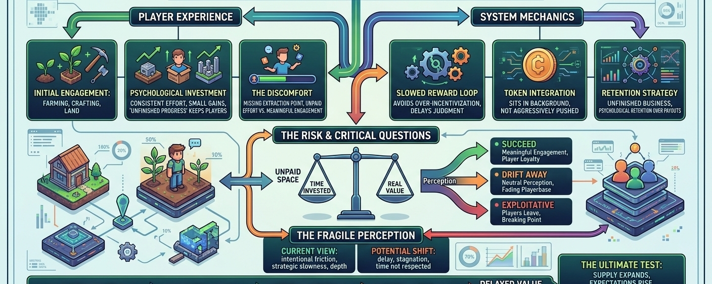 Right now, Pixels works because the system still feels intentional. The friction feels designed, the slow pace feels deliberate, and the lack of immediate rewards feels like strategy rather than weakness. But that perception is fragile. The moment players start feeling like their time isn’t being respected, everything changes. What once felt like depth begins to feel like delay, and patience starts to feel like stagnation. Once that shift happens, it’s difficult to recover.