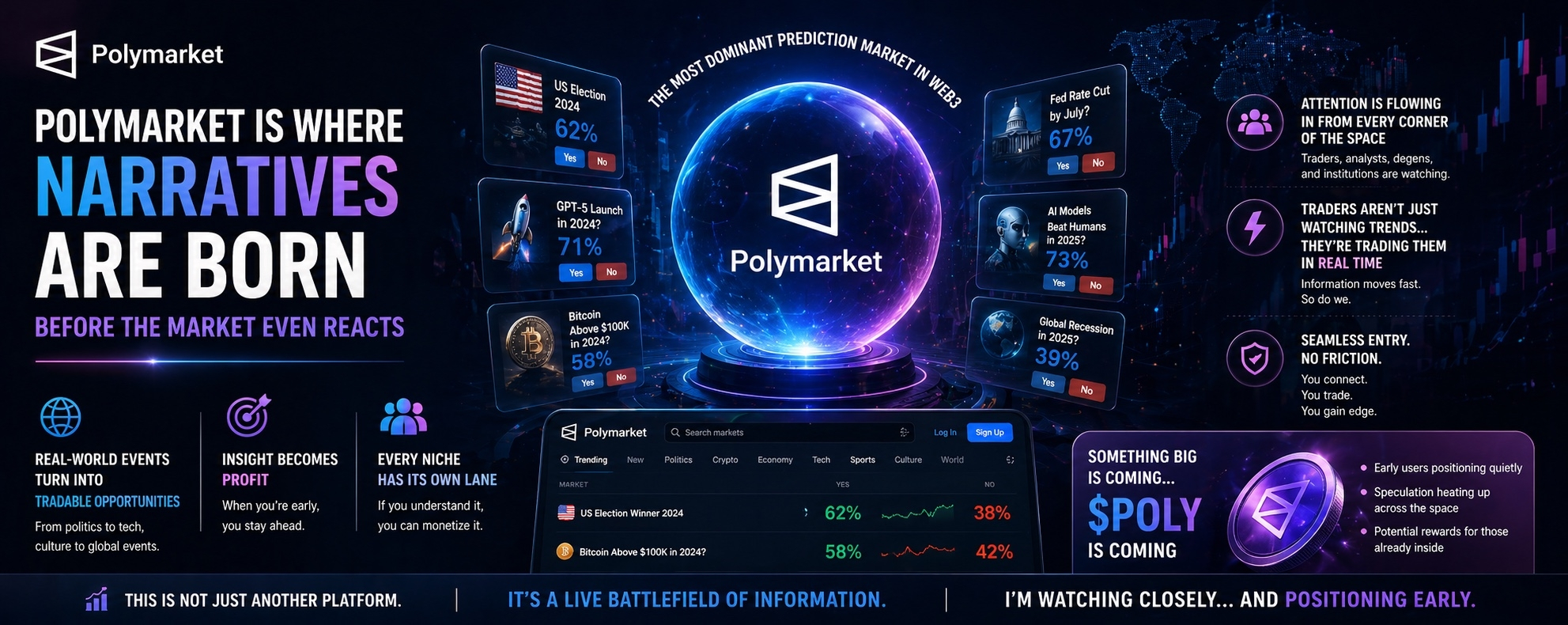The more I watch how markets move, the more I realize price often reacts long after narratives begin forming. By the time something becomes obvious on charts or starts trending across social media, early positioning has usually already happened. That is why I have been paying closer attention to Polymarket, because I do not think it is just another prediction platform anymore. I think it is quietly becoming a place where narratives begin before broader markets fully price them in.