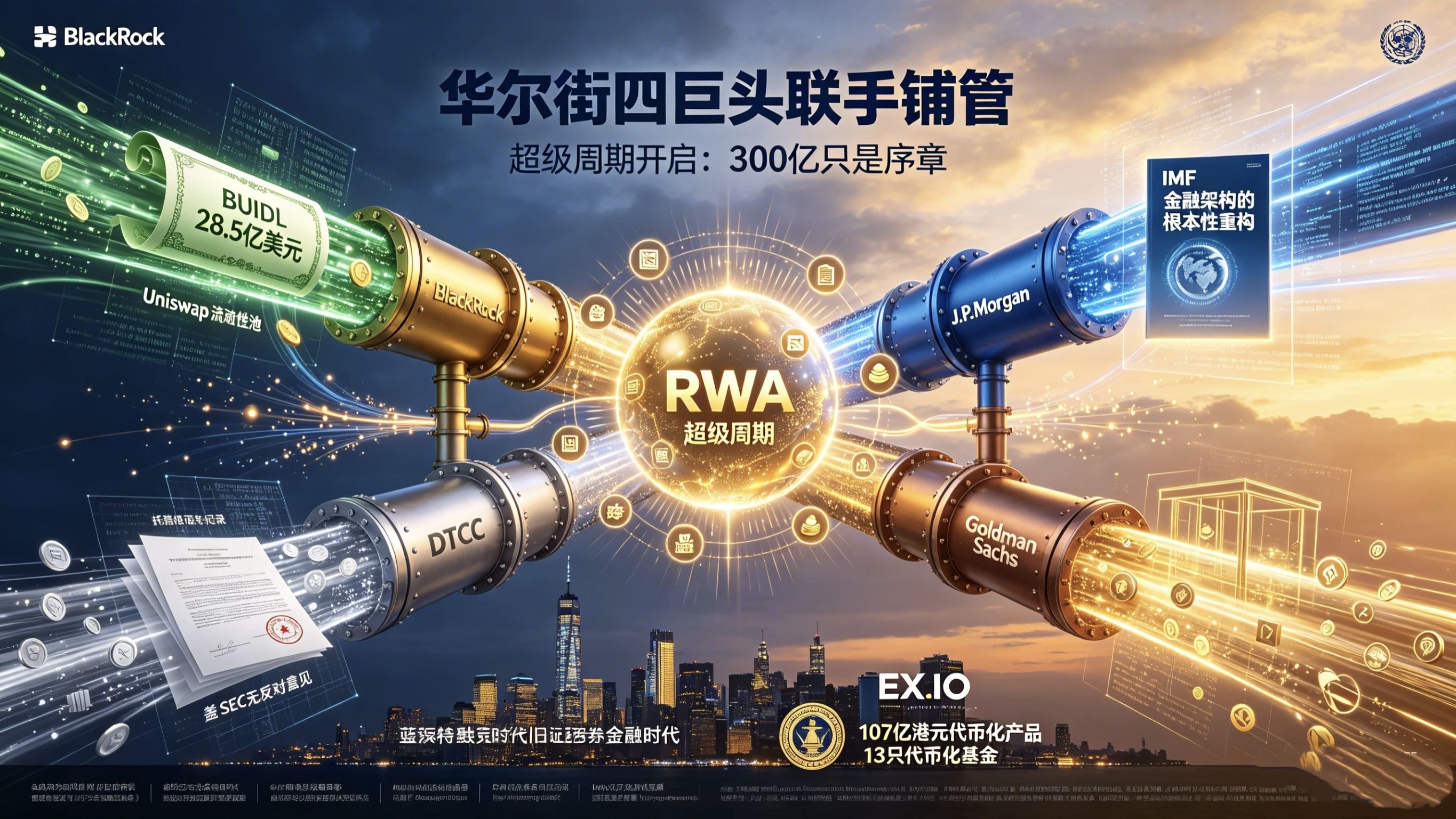 This isn't just talk, nor is it a vision. These four institutions aren't just doing research, checking reports, or waiting for the next big trend. They've already taken action. BlackRock has ramped up its BUIDL fund to about $2.85 billion, launching on Uniswap to open up liquidity for institutional-grade RWA assets in a permissionless manner. JPMorgan is expanding its blockchain-based infrastructure usage. DTCC received a no-action letter from the SEC, starting to step into the space for tokenized asset custody and settlement. If it were just talk, it would be a regular industry commentary. But with all four pushing forward on the 'pipeline laying' level simultaneously, the gravity of this situation is entirely different. Breaking it down, what are the four giants laying down? 🔍 Tim Warren's report didn't detail what each is doing, but piecing together public information, the layout paths of these four giants are already very clear. BlackRock is paving the way on the asset management side 💼. The size of the BUIDL fund already speaks volumes—it's grown 65% this year.