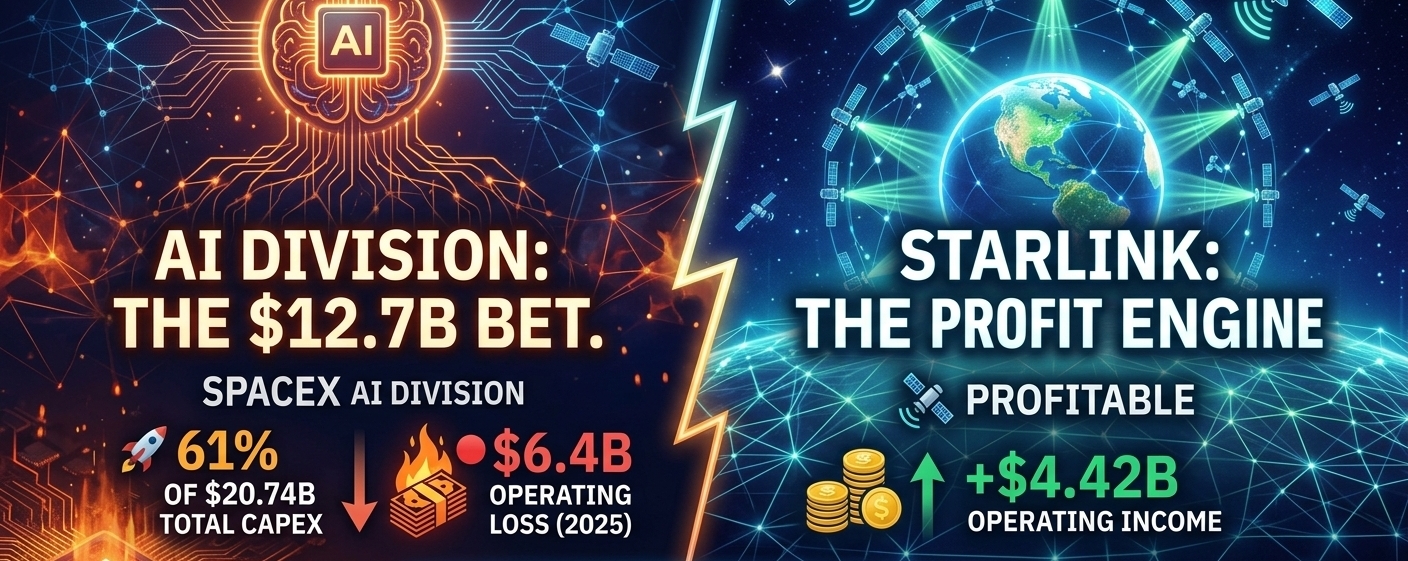🤖 AI Expansion: SpaceX invested $12.7B (61% of total Capex) into its AI Division. This led to a $6.4B operating loss as they scale up.
