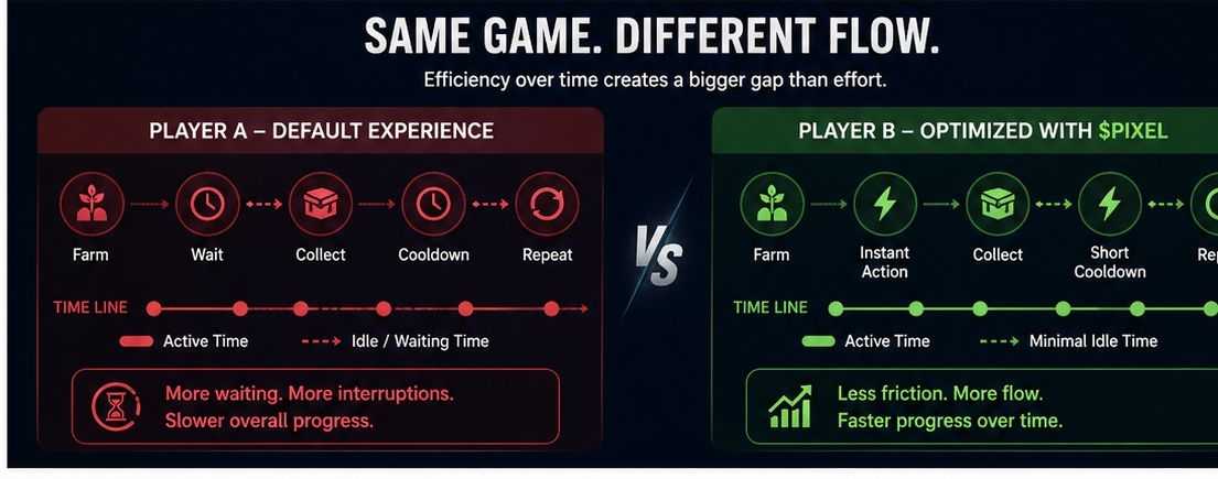 Just a relaxed loop. Farm, collect, repeat. No pressure, no complexity. You can play casually without thinking too much.