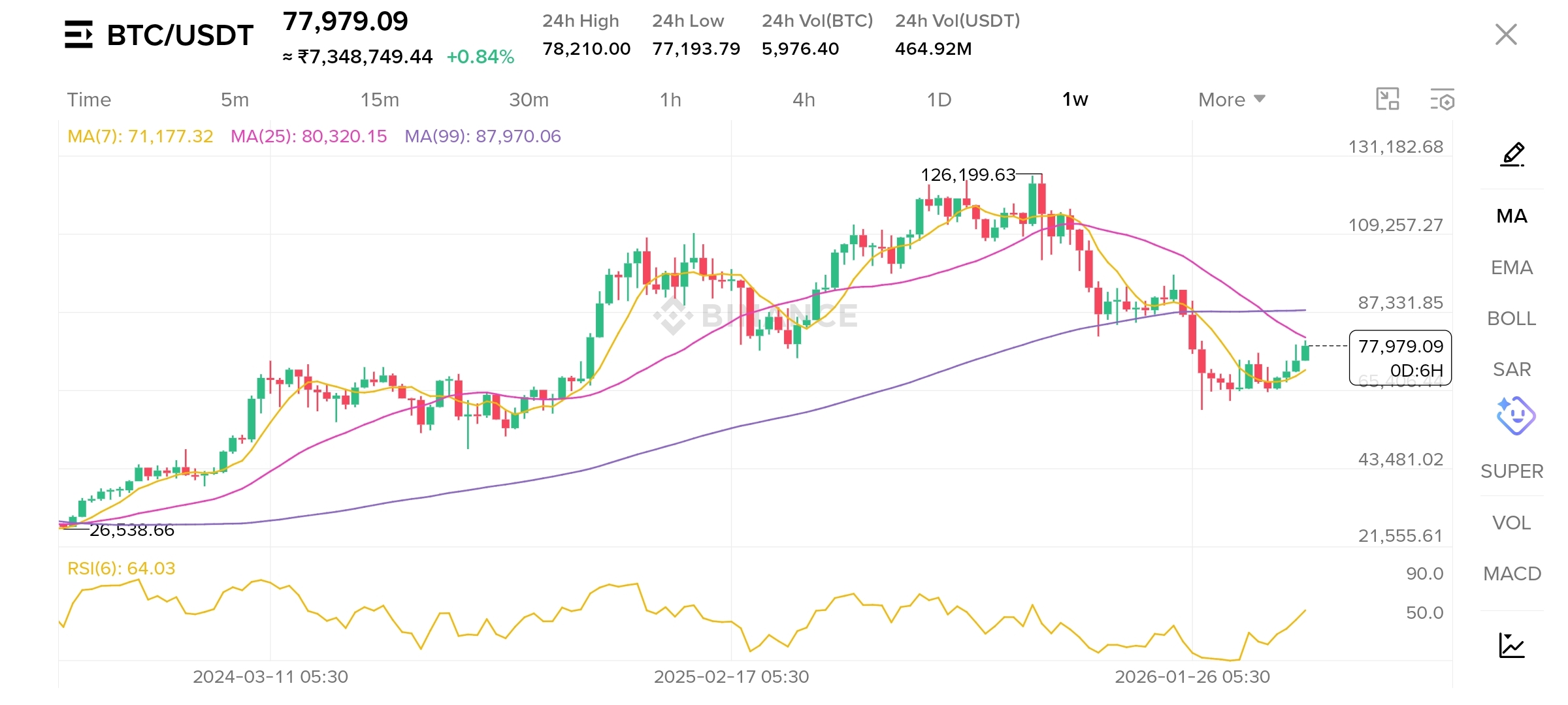 Current Resistance: рдЪрд╛рд░реНрдЯ рдХреЗ рдЕрдиреБрд╕рд╛рд░, $80,320 (MA 25) рдПрдХ рдХрдбрд╝рд╛ рд░реЗрдЬрд┐рд╕реНрдЯреЗрдВрд╕ рдмрдирд╛ рд╣реБрдЖ рд╣реИред рдЕрдЧрд░ BTC $80,500 рдХреЗ рдКрдкрд░ рдХреНрд▓реЛрдЬрд┐рдВрдЧ рджреЗрддрд╛ рд╣реИ, рддреЛ рд╣рдо рдЕрдЧрд▓рд╛ рдЯрд╛рд░рдЧреЗрдЯ $87,331 рдФрд░ рдЙрд╕рдХреЗ рдмрд╛рдж $90,000+ рдХреА рддрд░рдл рдЬрд╛рддреЗ рджреЗрдЦ рд╕рдХрддреЗ рд╣реИрдВред