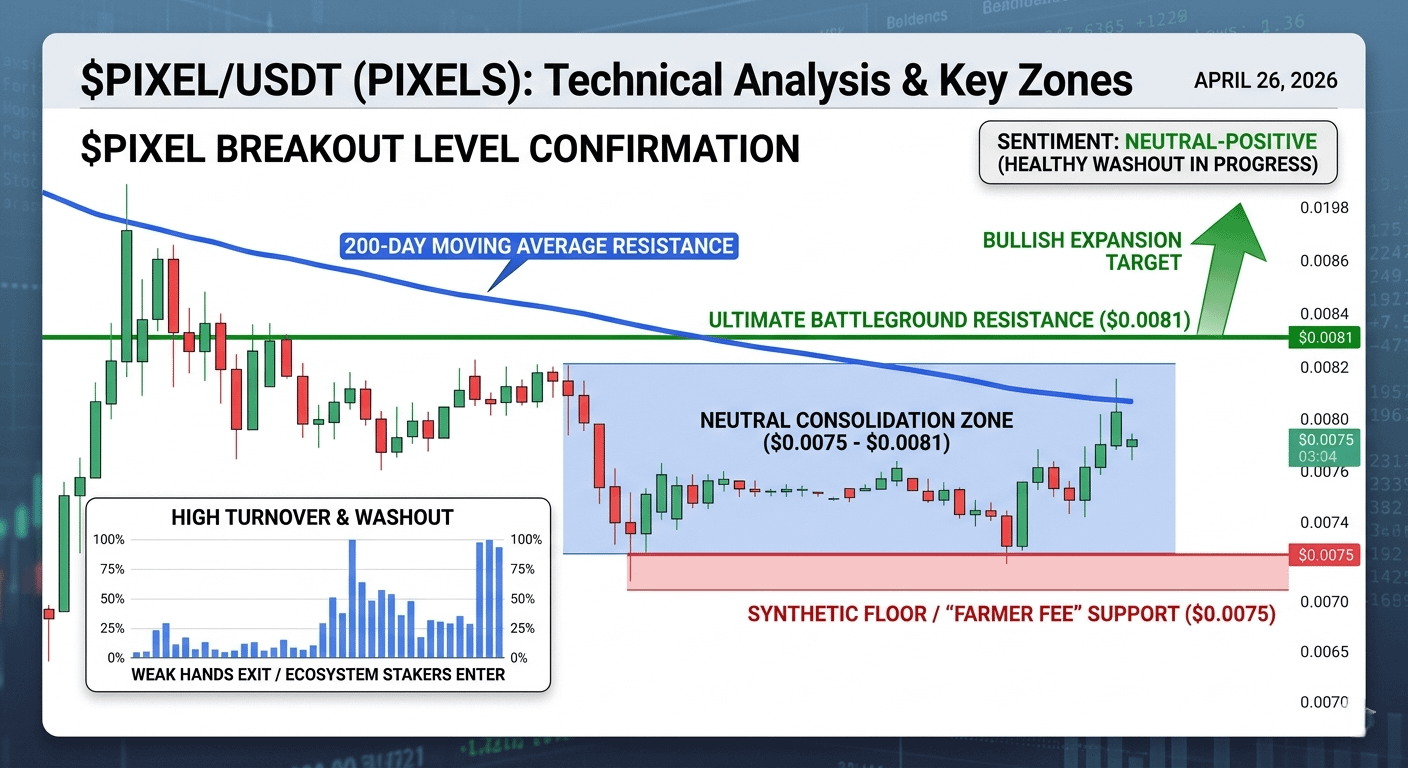 As of April 26, 2026, PIXEL is currently navigating a sophisticated consolidation phase within the $0.0075 - $0.0081 range. While short-term holders might find the sideways price action frustrating, a closer look at the technical indicators reveals a "healthy washout" of speculative capital.