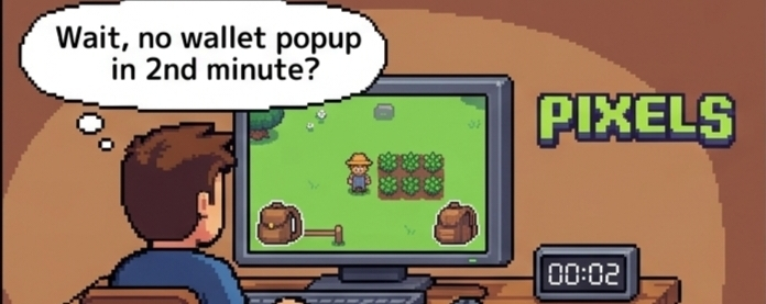 I kinda opened Pixels expecting the usual web3 mess… you know, connect wallet, laggy interface, weird vibes… but this one didn’t instantly annoy me, which already felt suspiciously nice. like… wait, am i actually just… playing a game? no aggressive popups, no confusing steps in the first 2 minutes. just walking around, farming stuff, doing small tasks. it felt slow. almost too calm. not what i expected from anything tied to crypto.