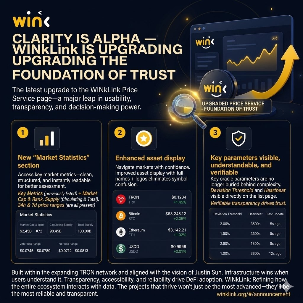 The latest upgrade to the WINkLink Price Service page might look like a simple UI refresh—but underneath, it’s a major leap in usability, transparency, and decision-making power.