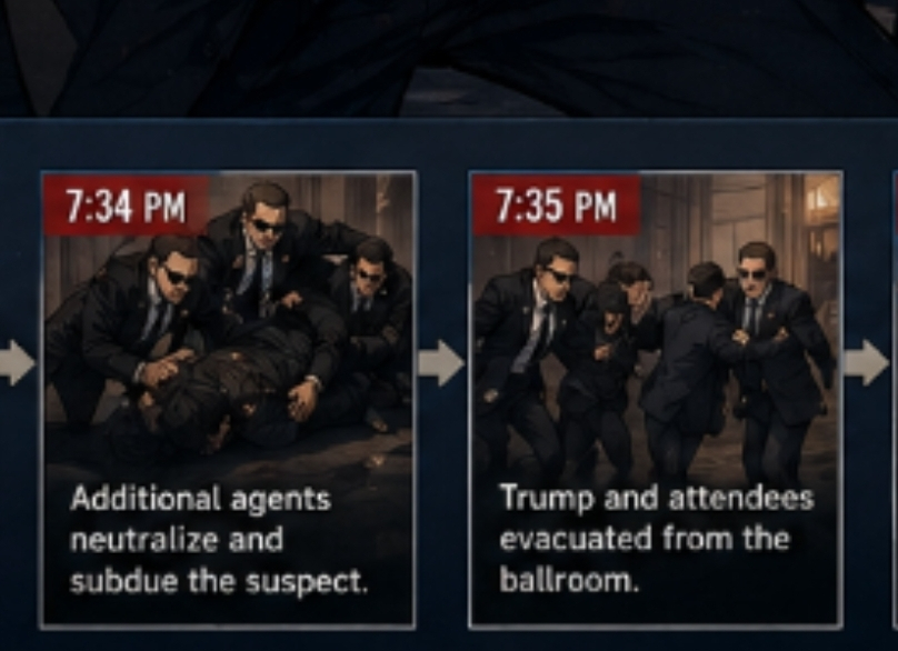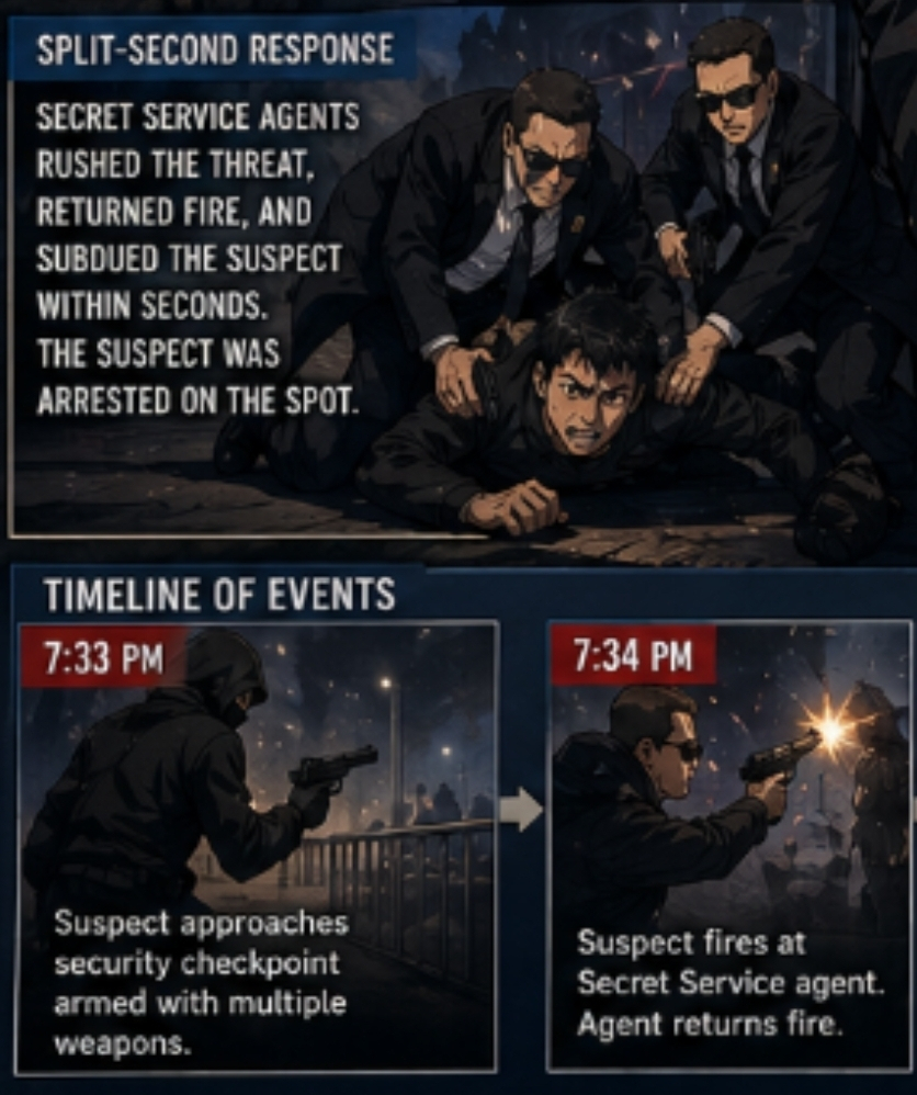 The suspect opened fire at a Secret Service agent. The agent responded instantly, engaging the threat.