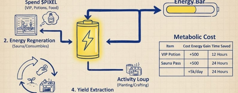 They aren't just "convenience" items. They are the liquidity valves of the entire ecosystem. The litepaper describes a sustainable loop, but the real secret is that the game forces you to buy back your own time. If you want to skip the 24-hour wait for your energy to refill, you have to burn PIXEL.