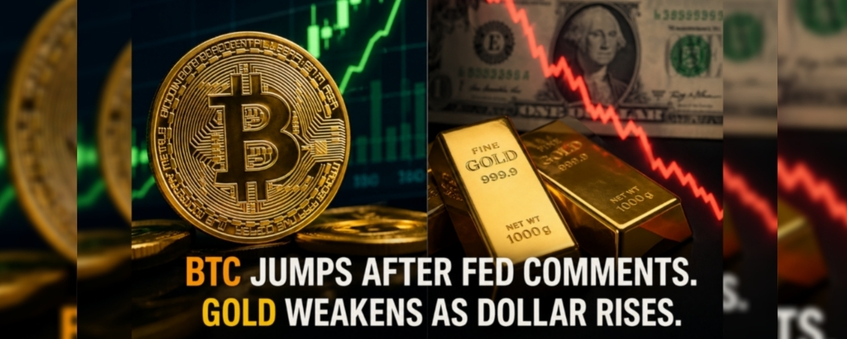 Bitcoin Jumps After Fed Comments — Gold Weakens as Dollar Strengthens