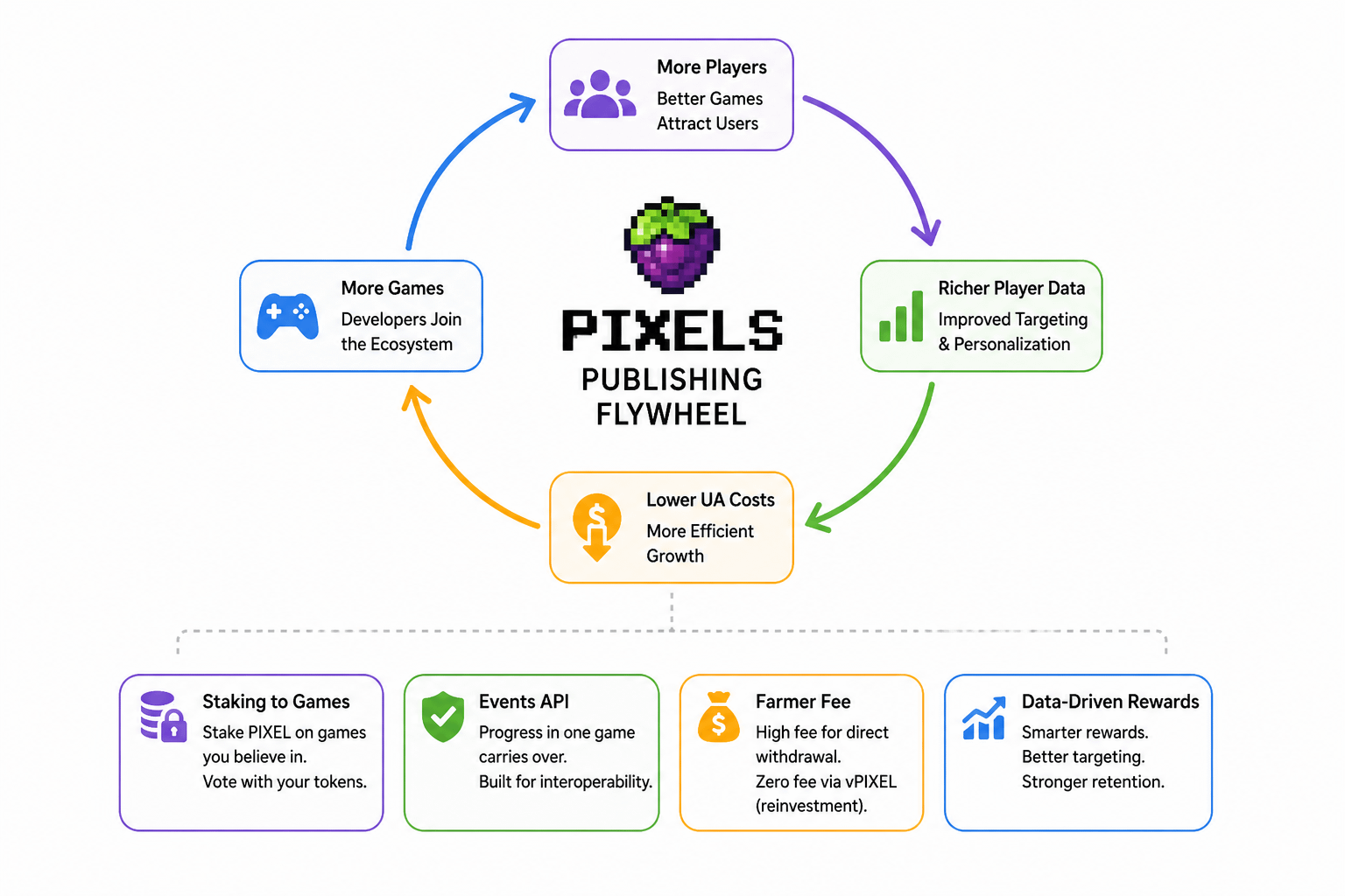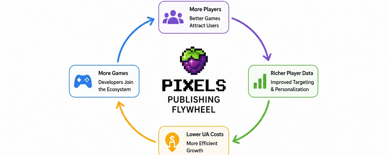 Pixels is not just saying "we made a fun farming game." The whitepaper lays out something more structural. They call it a "Publishing Flywheel" the idea that better games attract richer player data, richer data brings down user acquisition costs, and lower costs pull in even more games. On paper... it reads less like a gaming company and more like a data infrastructure play disguised as a farm. That distinction matters more than most people realize.