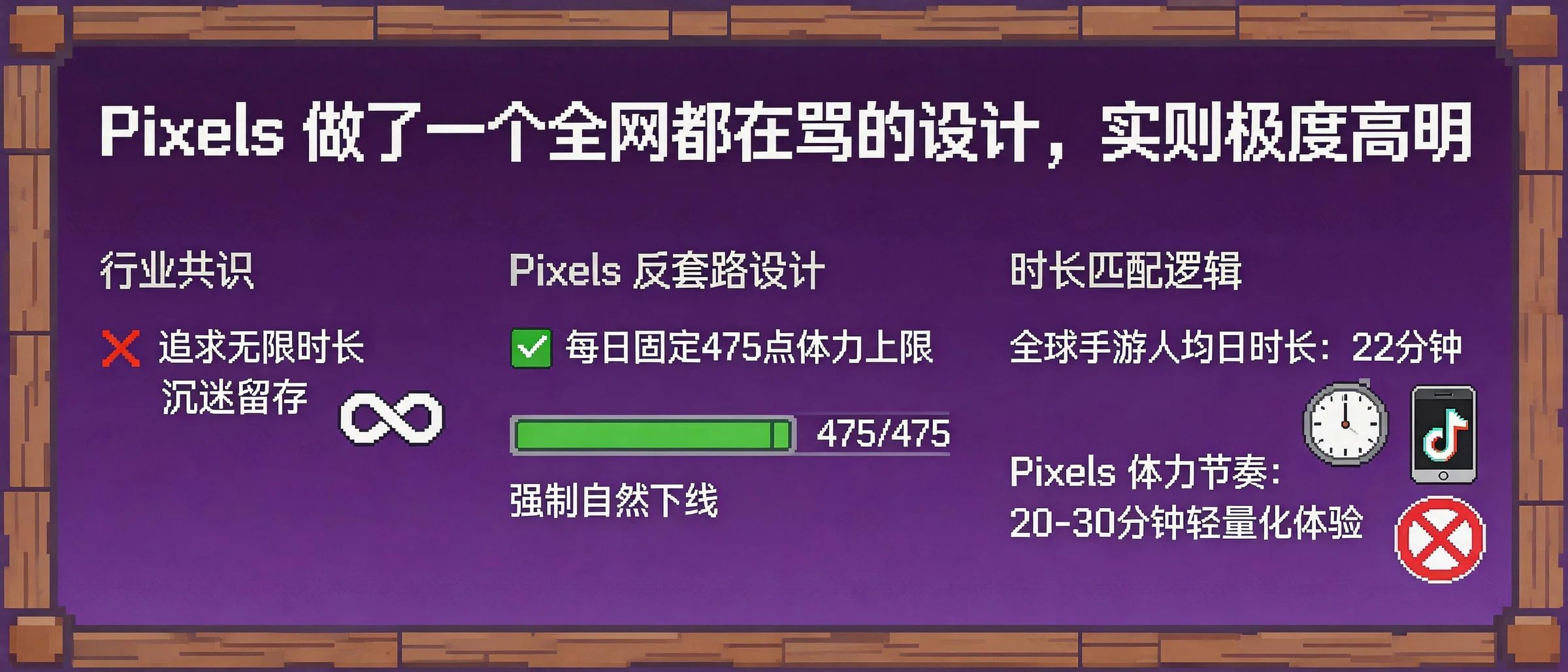 Pixels 的 Energy 上限,不管最初的设计动机是什么,客观上做了一件游戏行业很少主动做的事:给用户一个自然的退出信号。