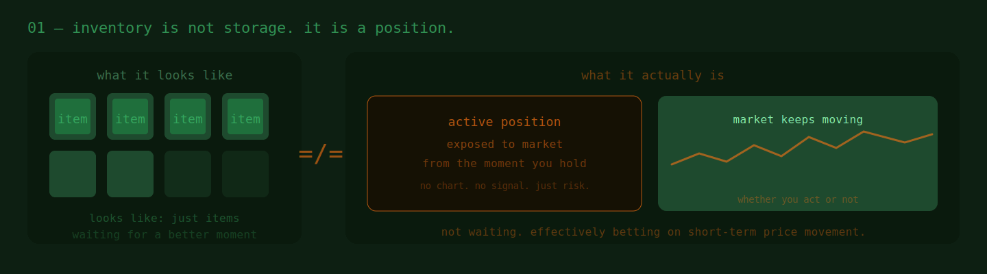 because inventory isn’t neutral. it’s not just what you haven’t sold yet. it’s your current stance inside the market at that moment. and the longer you hold, the more that stance matters.