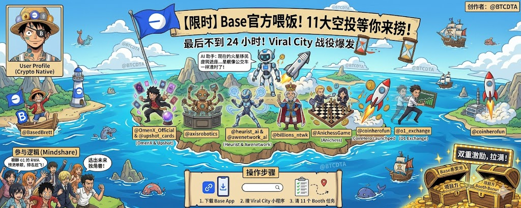 在 Base App 搜 Viral City 小程序,把那 11 个 Booth 任务