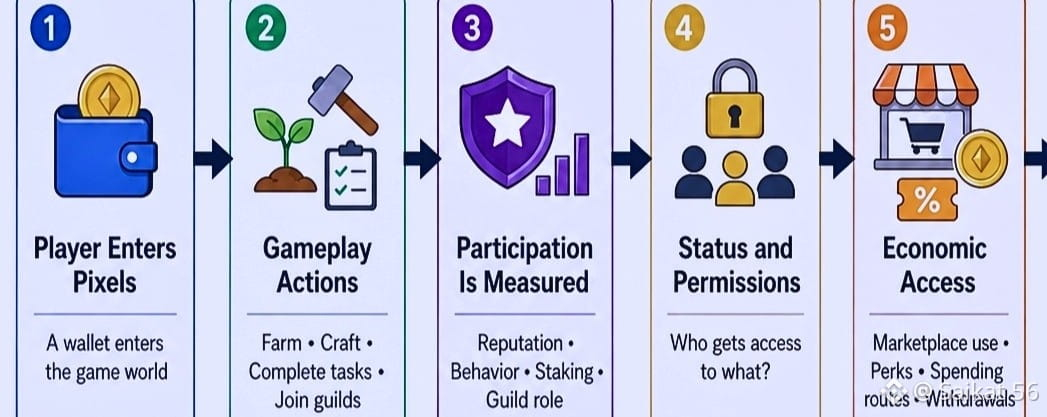 Most people still label Pixels as just a “play-to-earn game with a token.” But that label is starting to feel too narrow. Because what’s actually happening isn’t just gameplay it’s structured participation. The system quietly tracks how people engage, how consistently they show up, and what kind of behavior they display. Think of it like a city. Everyone enters through the same gate, but they don’t all end up in the same place.